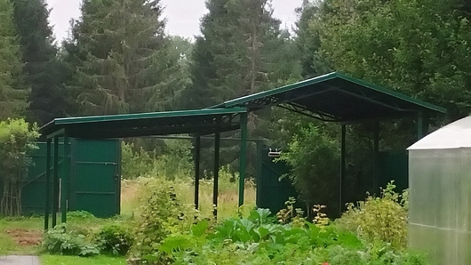 Навес двускатный + односкатный с крышей из профлиста зеленого цвета Арт-710